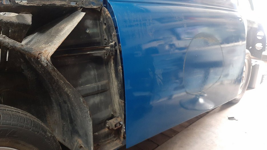 To, że karoseria będzie piaskowana od razu, powoduje też, że muszę zdjąć blachy, pełniące funkcję chlapaczy spod tylnych błotników. Zostawiałem je dla blacharza.