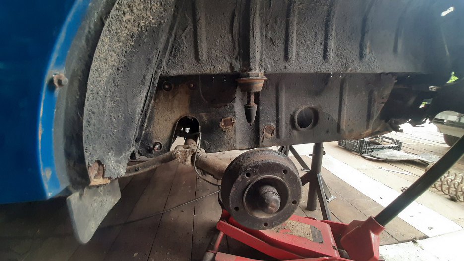 Po zdjęciu blach podniosłem auto, postawiłem na kobyłkach i zdjąłem koła.