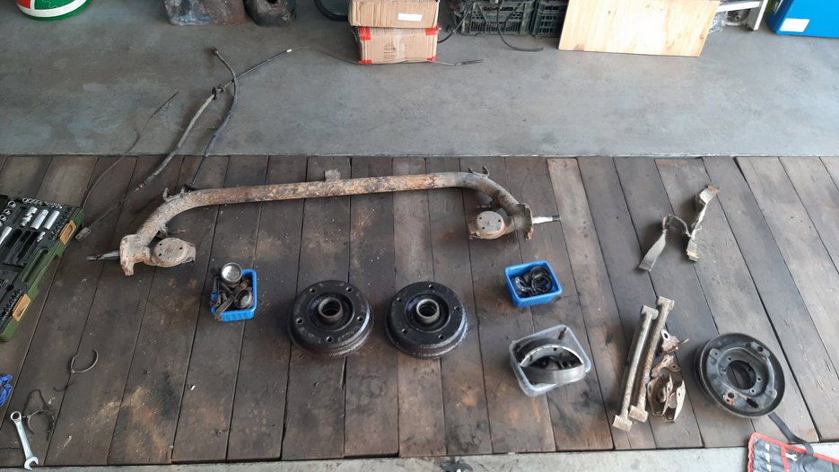 Skoro karoseria pojechała do piaskowania, a wszystkie graty są wywiezione do magazynu, a zostało u mnie tylne zawieszenie, to zaproponowałem, żebyśmy je zrobili od razu na gotowo.