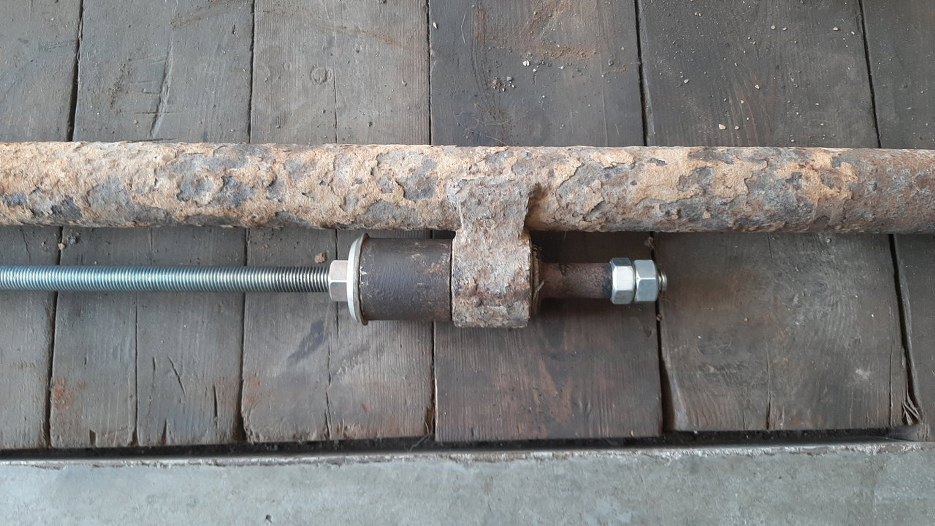 Tu widać oryginalne mocowanie linki hamulca ręcznego.