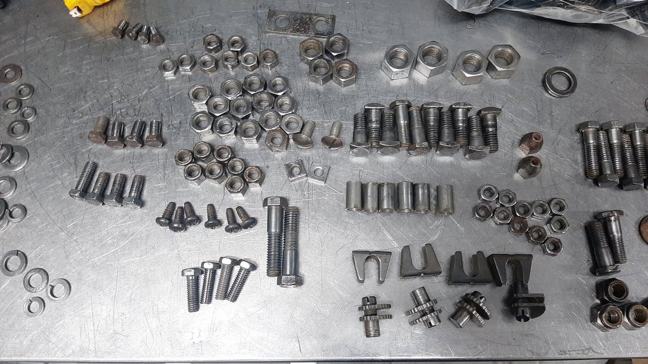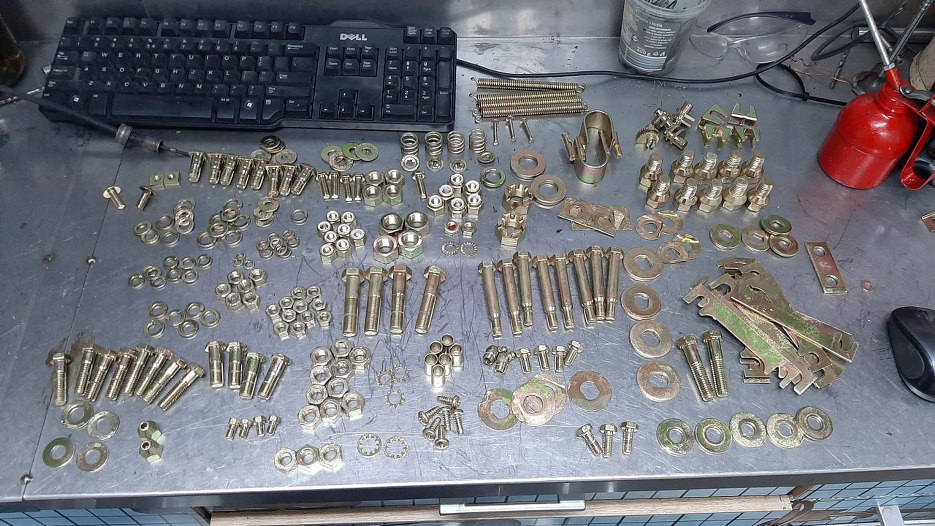 Wracamy do tematu przedniego zawieszenia. Trochę trwało podjęcie decyzji co kupić gdzie, szukanie części (wcale nie jest łatwo kupić cokolwiek do bębnowych przednich hamulców w tym Saabie) itp. Przygotowałem drobnicę do cynkowania.