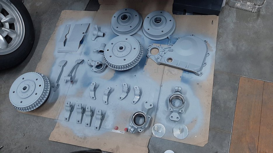 Niektórych części nie można malować proszkowo z różnych względów, maluję je na mokro. Tu zaplątały się też części z innych projektów :).