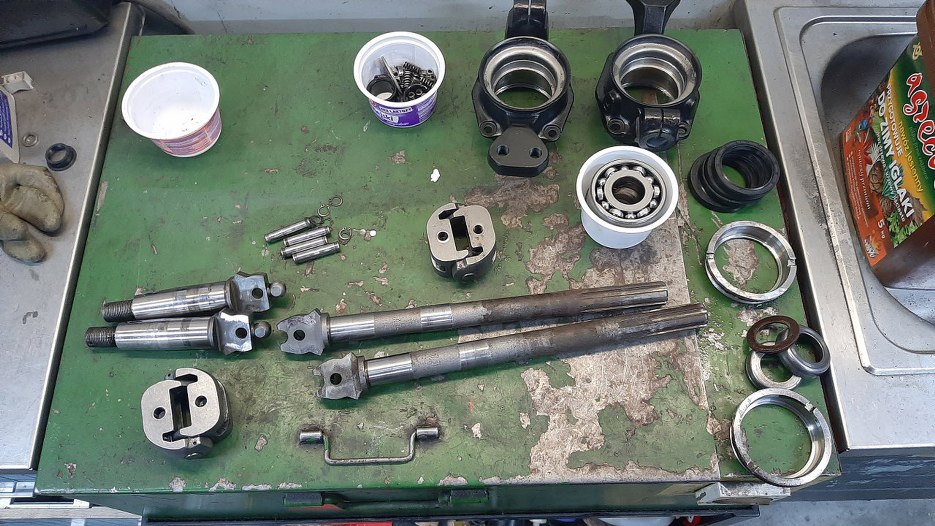 Wymyłem półosie i dokładnie wyczyściłem łożyska przednie ze starego smaru. Same łożyska są w idealnym stanie.
