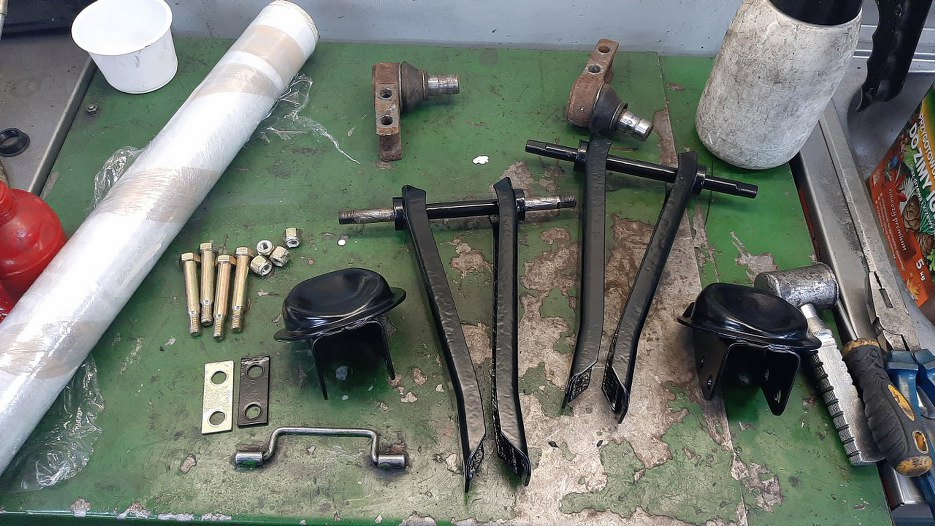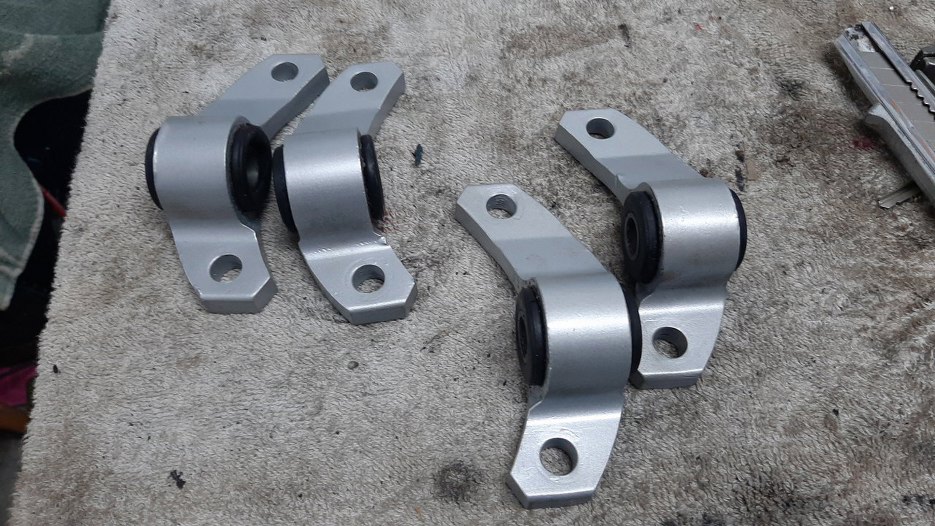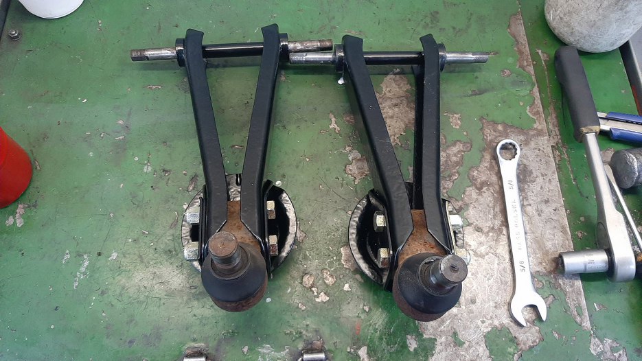 Przygotowałem części składowe górnych wahaczy. Sworznie nie wyglądają za dobrze, ale są w dobrym stanie, razem z gumami, więc zostają.