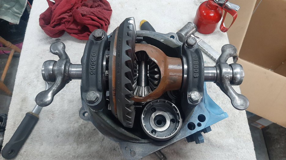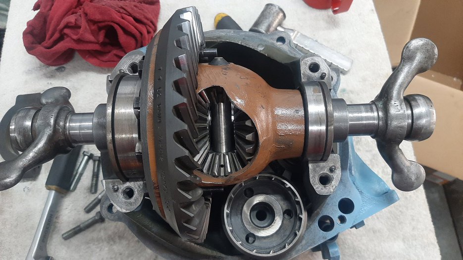Zostawiłem je jednak na razie, bo dużo łatwiej manewruje się tym dość ciężkim elementem jak jest za co złapać. Włożyłem mechanizm różnicowy na miejsce.