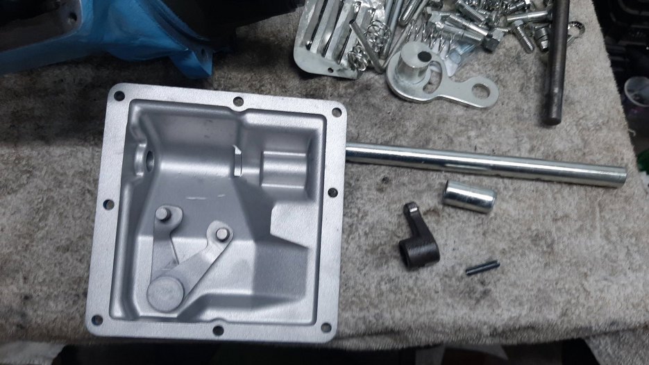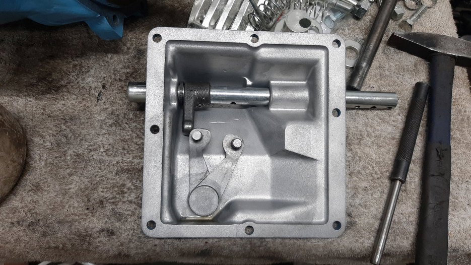 Wszystkie elementy aluminiowe wróciły ze szkiełkowania. Wyszły znakomicie. Przygotowałem mechanizm wybieraka biegów do złożenia. Oczywiście, ze względu na sposób, w jaki to rozłożyłem, muszę dać nowy kołek sprężysty. Ale za to mam ocynkowaną tą rurkę wybieraka!