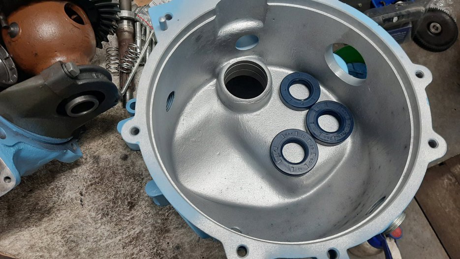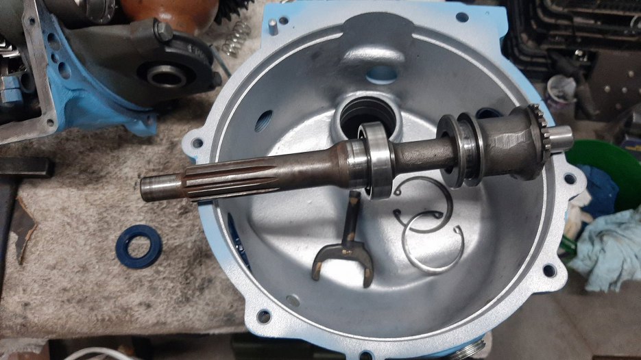 Wałek sprzęgłowy na miejscu, razem z nowym uszczelniaczem.