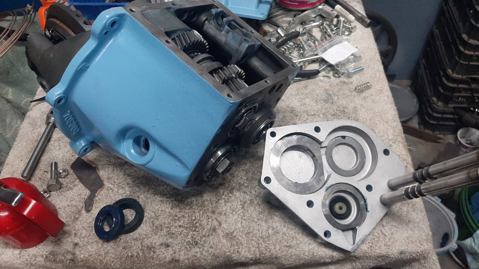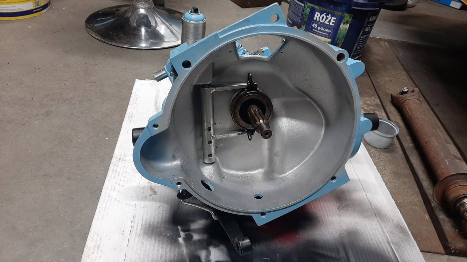 Włożyłem pokrywkę na miejsce. Podczas wkładania trzeba włożyć pręty w wybieraki, jednocześnie upychając na miejsce sprężynki i kulki zatrzymujące biegi w pozycji załączonej. Potem wyregulowałem wybieraki wkręcając nieco pręty.