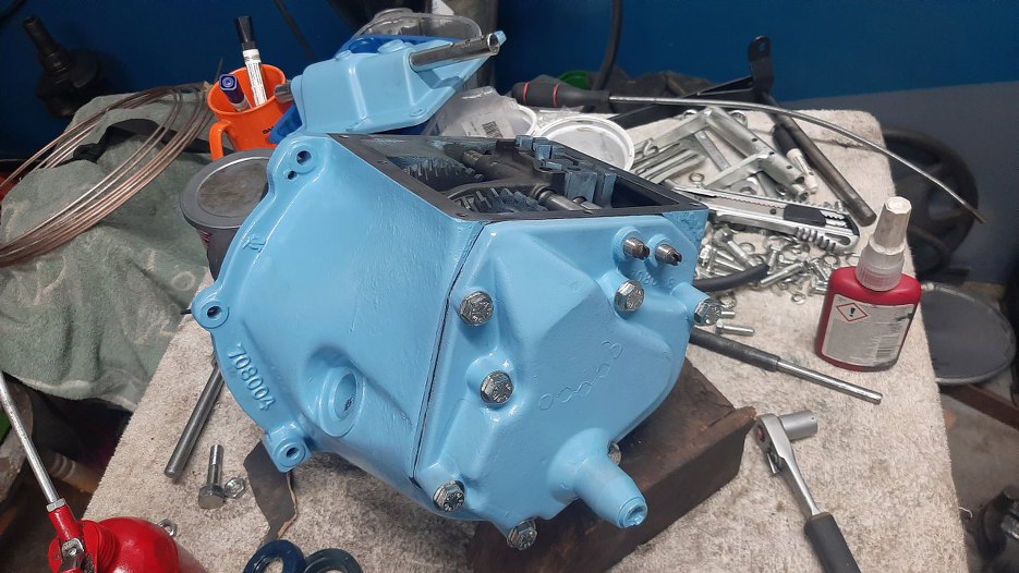 Potem nalałem jeszcze olej do środka i można uznać, że skrzynia jest gotowa. Zostawię cię teraz samego przy podziwianiu efektu końcowego. Wyszło fajnie.
