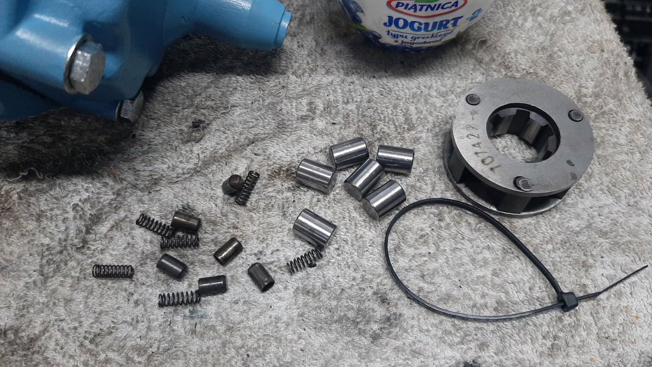 Następny będzie mechanizm wolnego koła, czyli sprzęgiełko jednokierunkowe. Wszystkie drobne części już czyste. Na zdjęciu widać też przyrząd specjalny. W serwisówce jest co prawda inny, ale ja mam najnowszy suplement, a w nim jest wyszczególnione takie narzędzie :).