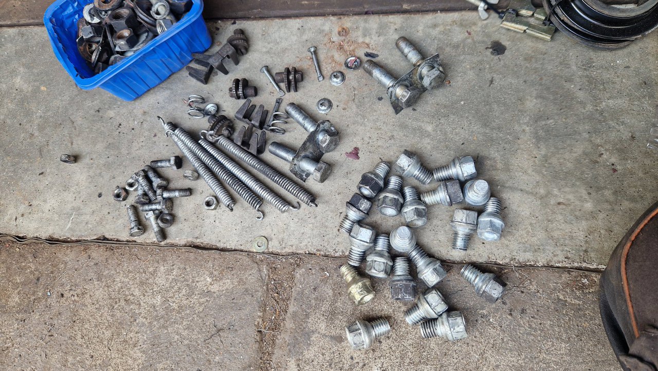 Przygotowałem też części hamulcow przednich i śruby kół.