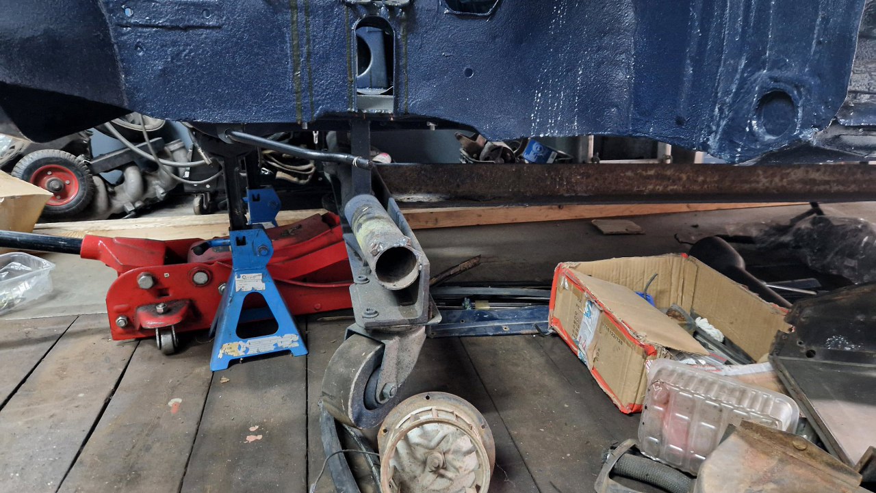W otwory mocowań dolnych wahaczy przykręcona była druga część ramy pod samochód. Musiałem ją też i tu odkręcić.
