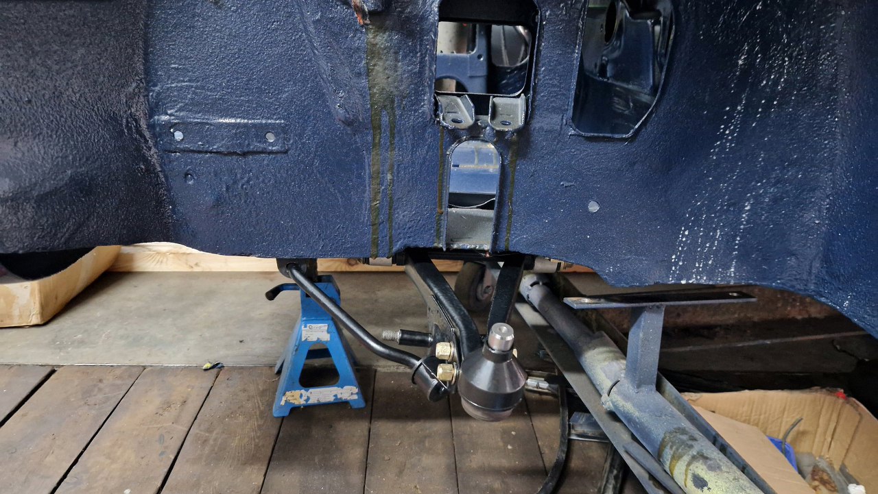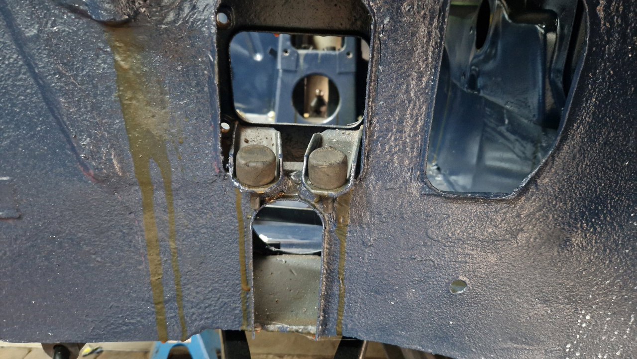 Wkładany jest od strony komory silnika. Pomiędzy mocowaniami a nadwozie trafiły podkładki regulacji geometrii zawieszenia, które miałem oznaczone która gdzie była.