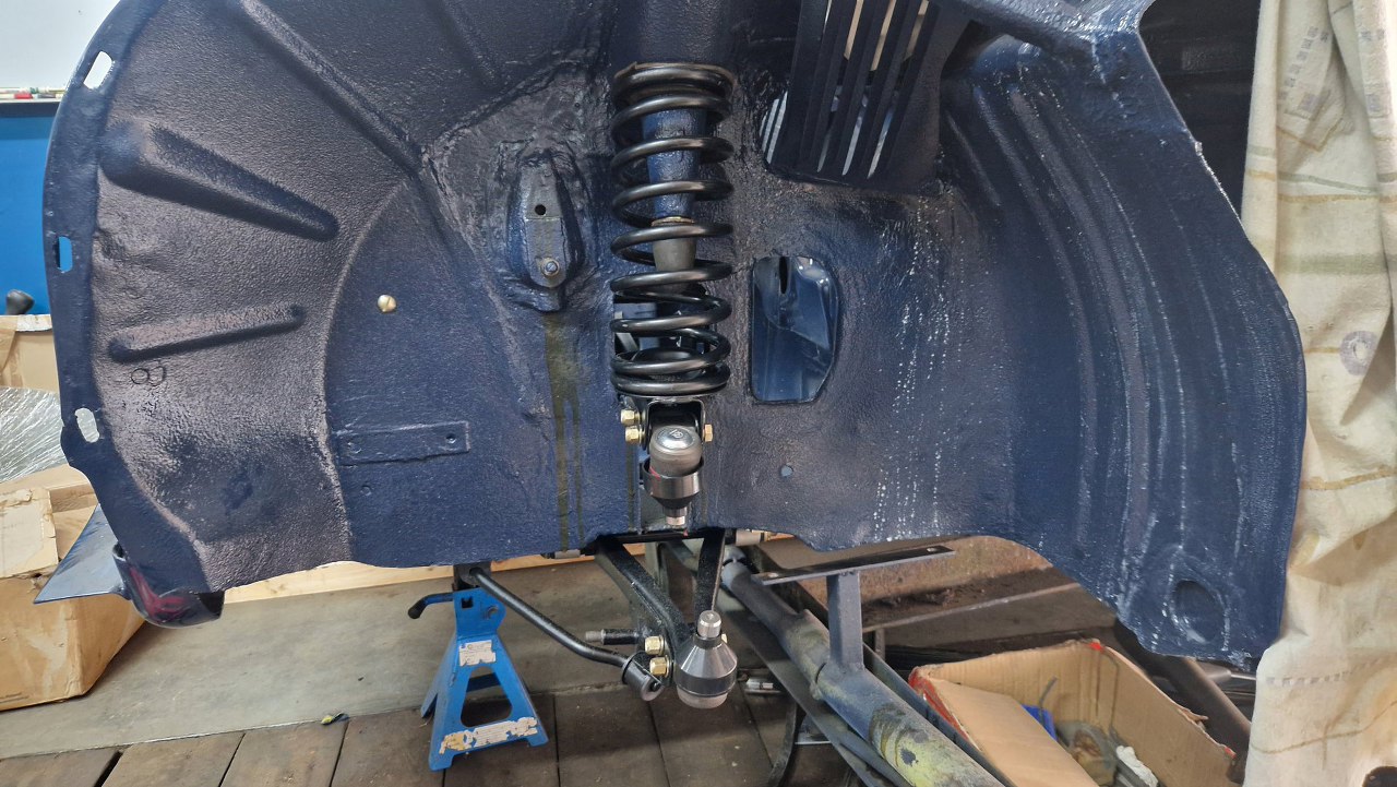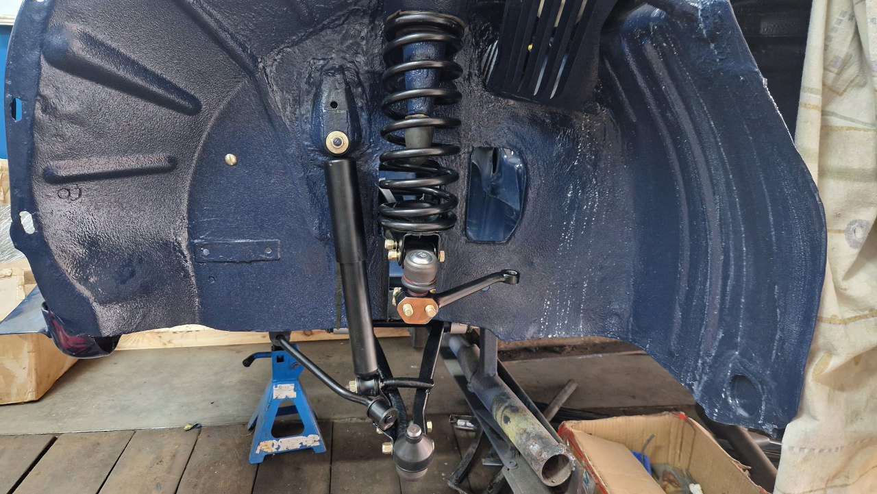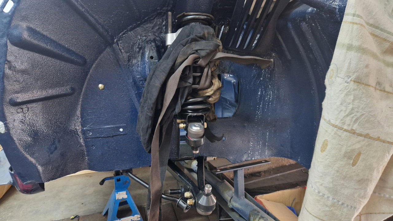 Dbając o to, żeby nie uszkodzić nadwozia, lakieru na sprężynie, a przede wszystkim siebie, zamontowałem wahacz.