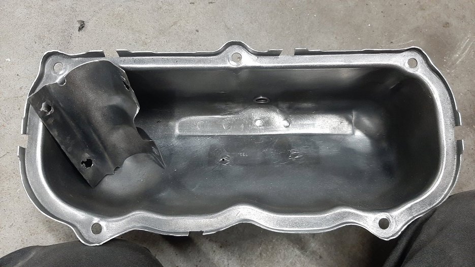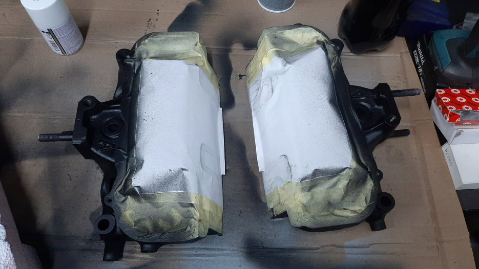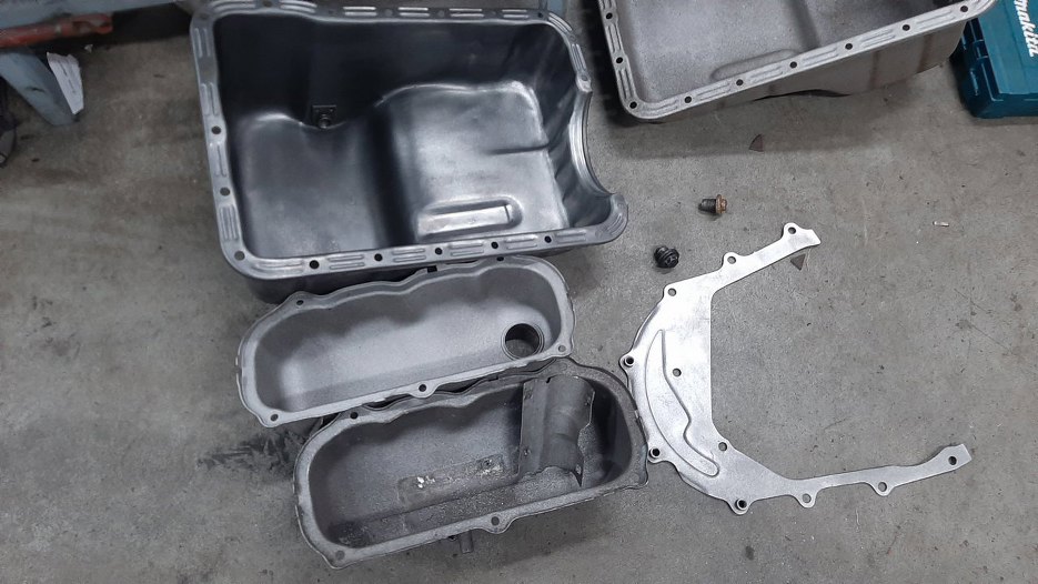 Pokrywy zaworów, miska oleju i blacha pod pokrywę rozrządu były pomalowane proszkowo z każdej strony. Lakier proszkowy w środku silnika to bardzo, bardzo zły pomysł. Jeśli cokolwiek pójdzie nie tak, to ukruszony płatek lakieru wpada do silnika i potrafi albo coś olejowego zatkać albo jeszcze coś gorszego. Dlatego wszystko to zostało wypiaskowane.
