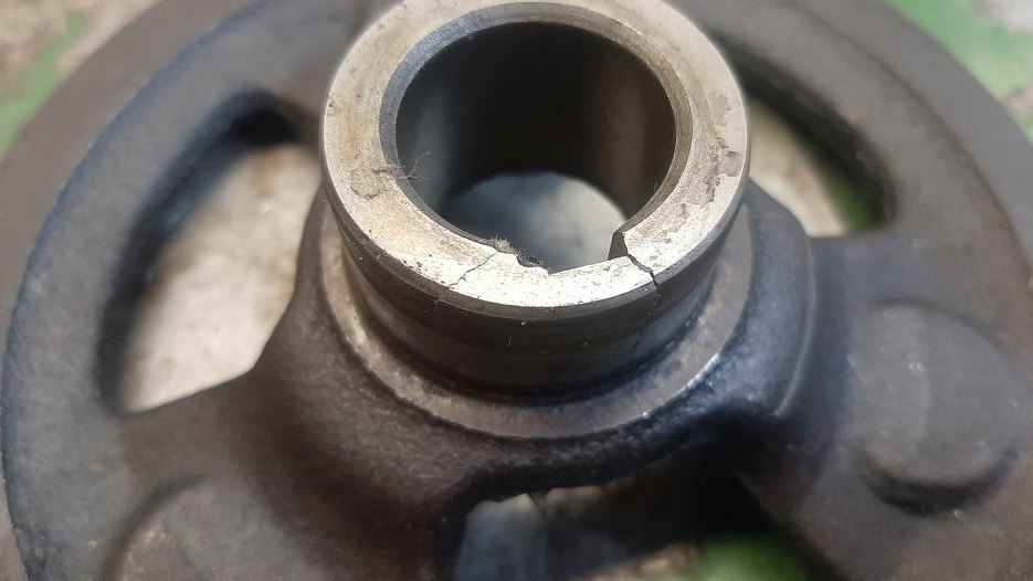 Kółko pasowe okazało się pęknięte. Ale że nie za bardzo jest skąd wziąć nowe, to trzeba spróbować to naprawić...