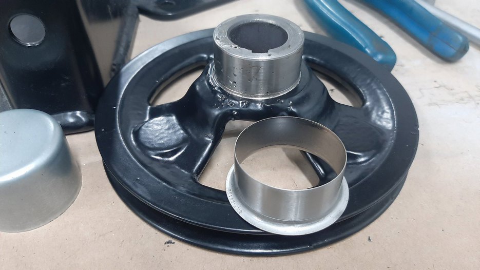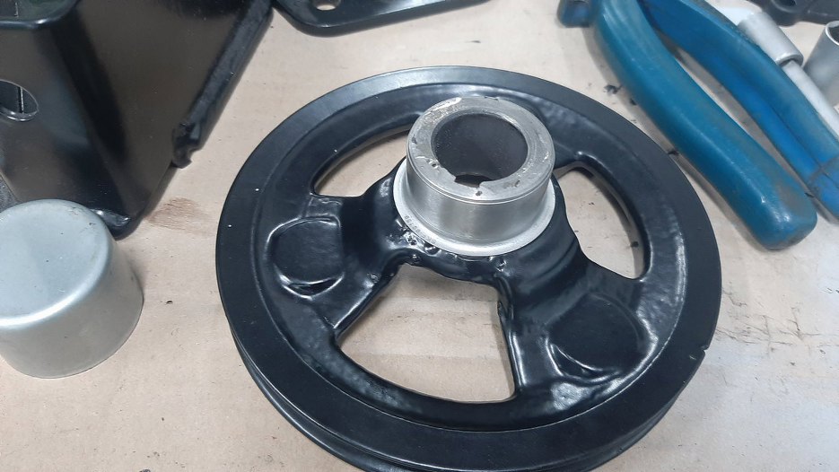 I założona. Dzięki temu simmering ma nową, gładką, szczelną płaszczyznę do uszczelnienia. W środku trochę musiałem popracować pilnikiem, żeby w ogóle to móc nałożyć na wałek, bo po spawaniu wymiary były... różne.