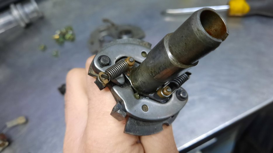 Założyłem ciężarki i ich sprężynki. Tym razem nasmarowałem to jak trzeba, więc się ruszają.