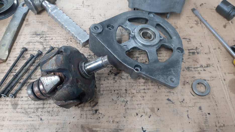I przykręciłem blaszkę. Na wirniku mam nowy komutator (ślizg właściwie) i łożysko.