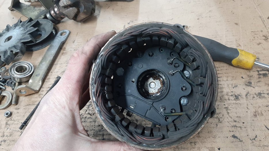 Zostało mi do wyjęcia uzwojenie z drugiej części obudowy. Widać, jakie tu wszystko jest zapyziałe.