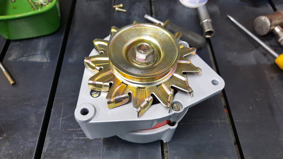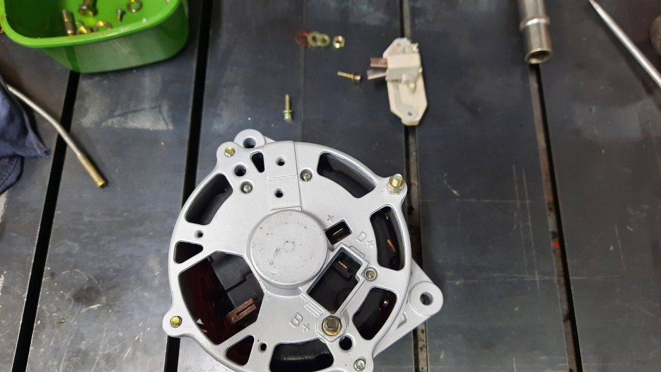 Przykręciłem go na miejsce. Uzupełniłem też wszystkie podkładki i nakrętki z tej strony alternatora.