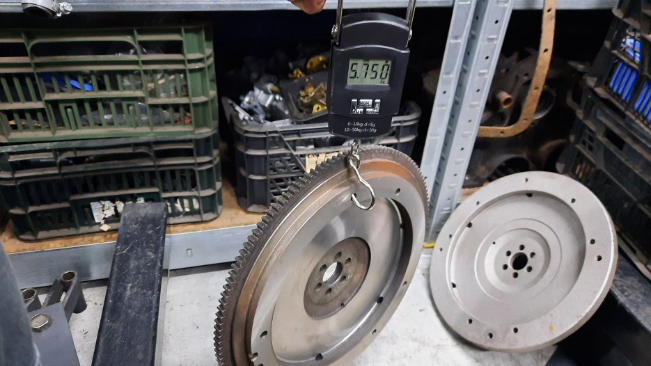 Coś mnie jeszcze tknęło, że koło zamachowe jakby lżejsze. Zważyłem więc inne koło od V4, co prawda bez wieńca - 6,20kg.