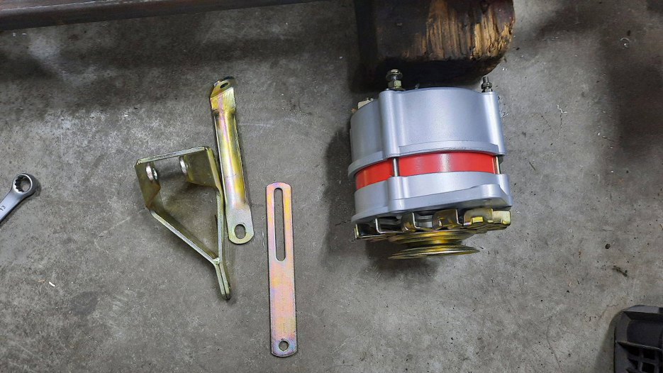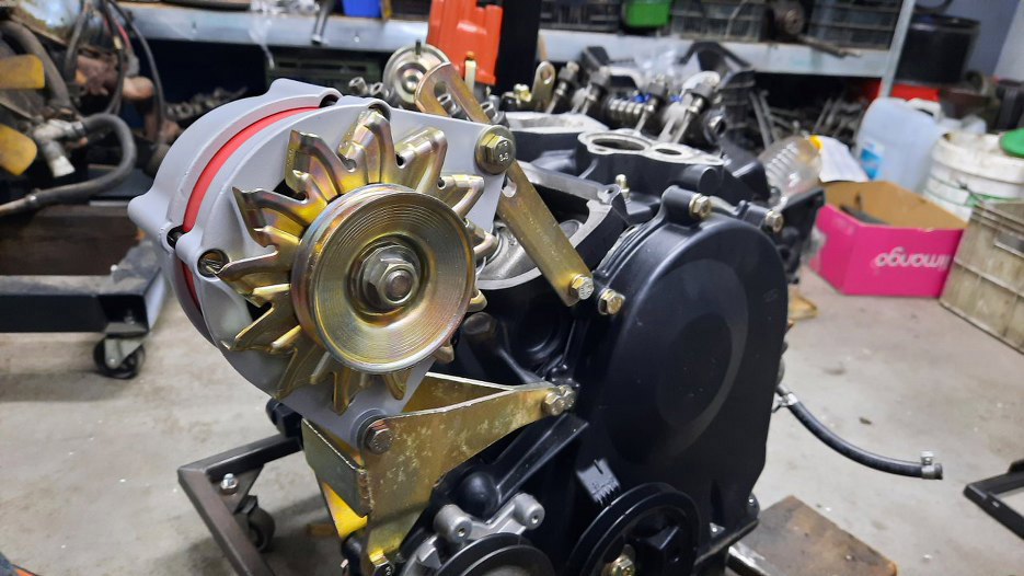Alternator, jak już wcześniej widziałeś, mam zrobiony. Mocowania były ocynkowane, ale wrzuciłem je razem z resztą rzeczy do ponownego cynkowania, bo nie pasowałyby :).