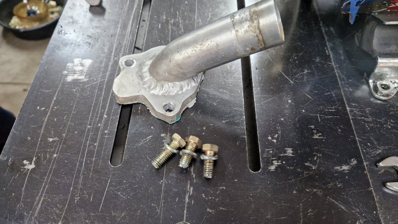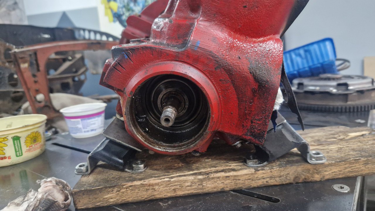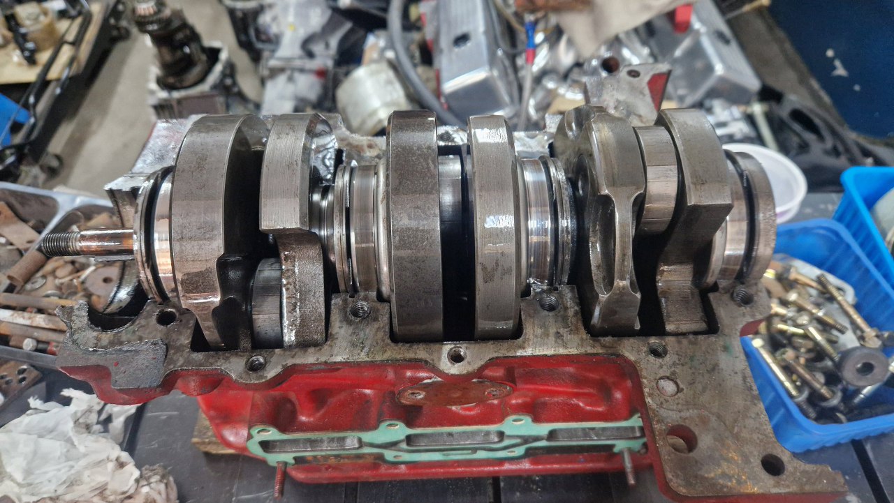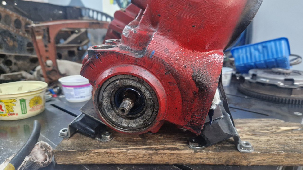 No to rozkręcamy. Silnik ma też zlikwidowaną fabryczną pompę wody (która jest na końcu prądnicy, której też nie ma, jest wstawiony alternator), zamiast niej jest elektryczna. Górny króciec z głowicy też jest przerobiony.