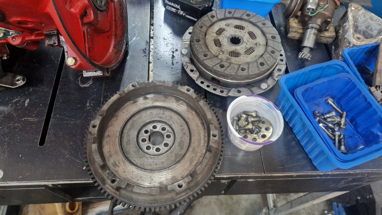 Koło zamachowe jest oryginalne, ale jest zastosowany nowszy docisk, słoneczko, zamiast starego, na sprężynach śrubowych.