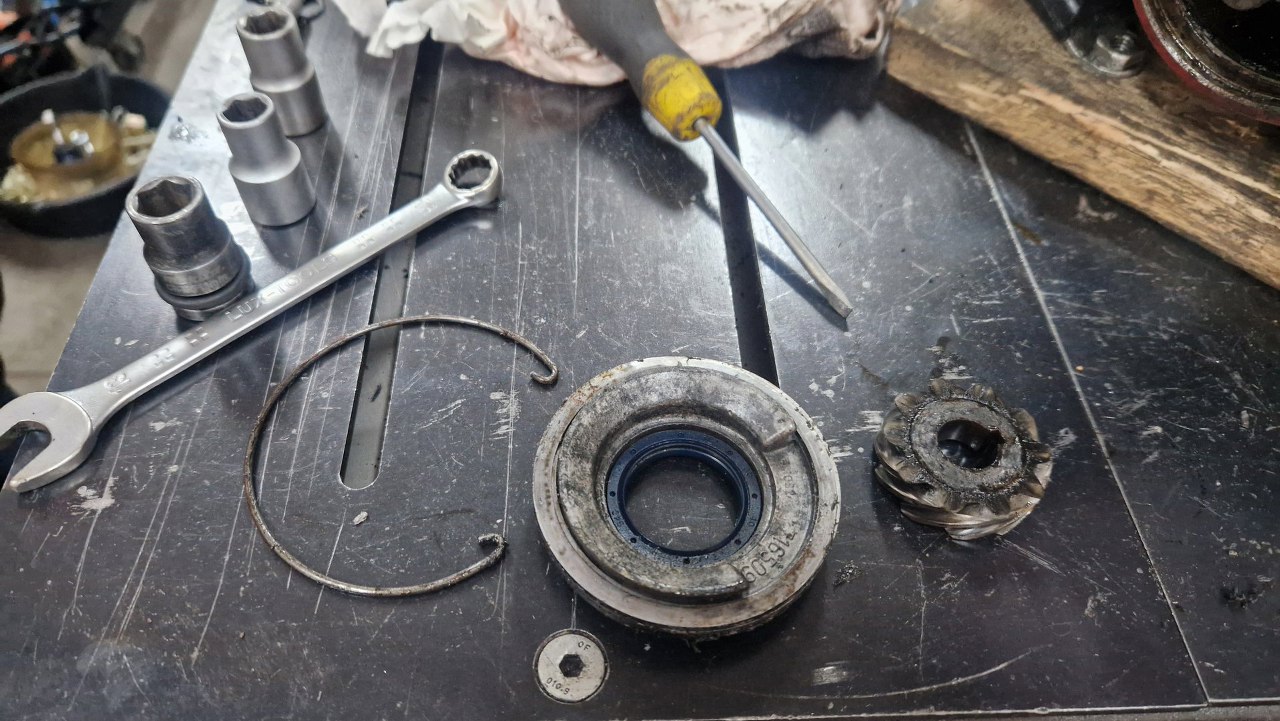 To też zdemontowałem. Zdjąłem też kółko zębate napędu aparatu zapłonowego i pompy oleju, które jest tam na wale.