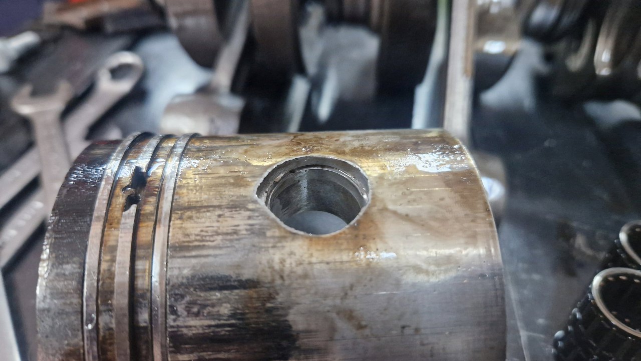 Tu jest jedyny otwór, który jest tylko ledwo nadtopiony dookoła. W środku widać pierścień Segera, któy trzyma sworzeń w tłoku.