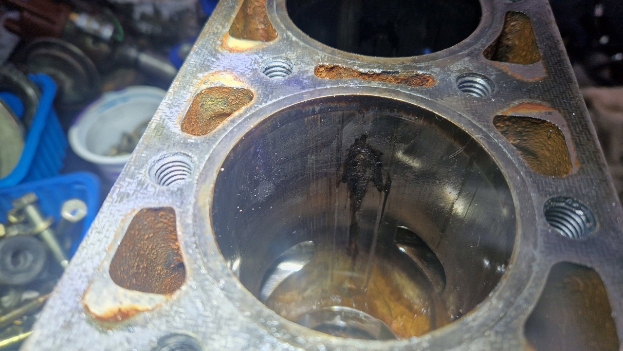 Po zdjęciu głowicy widać, że nie ma za dużo nagaru, ale dwa cylindry...