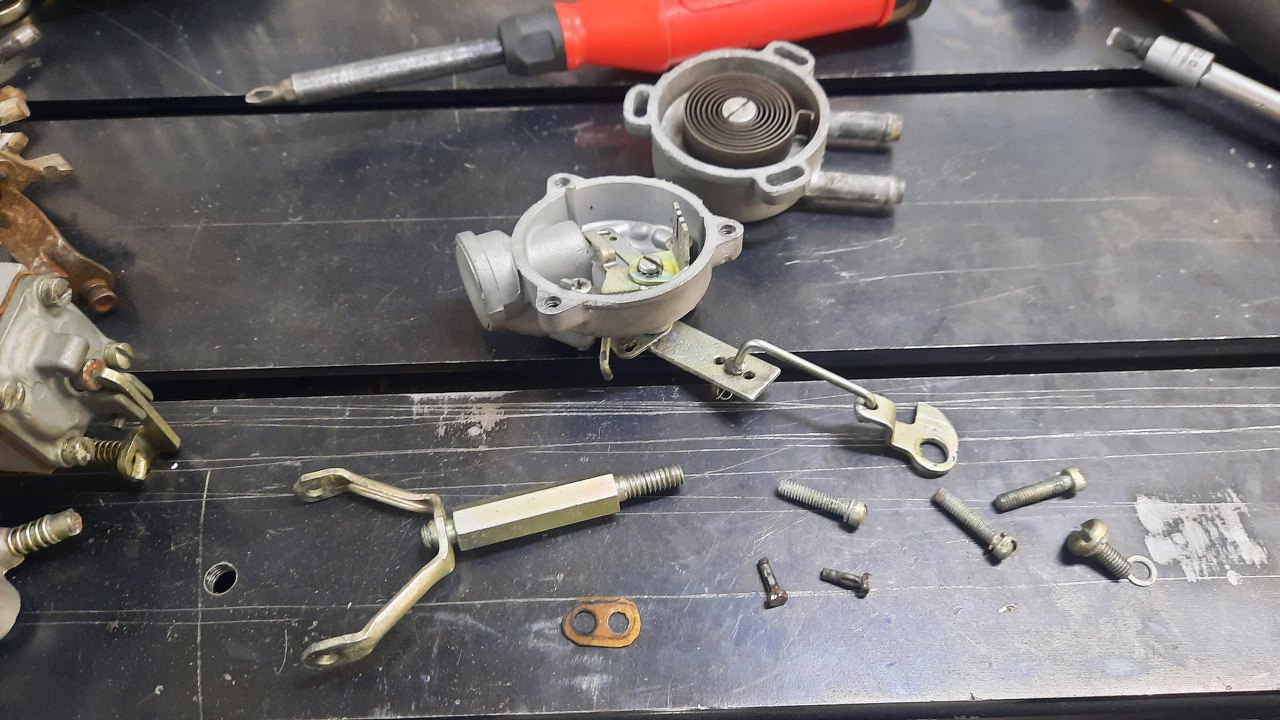 Zmontowane.Ten element, do którego podłączone jest cięgno, też jest wzięty z zapasowego gaźnika.