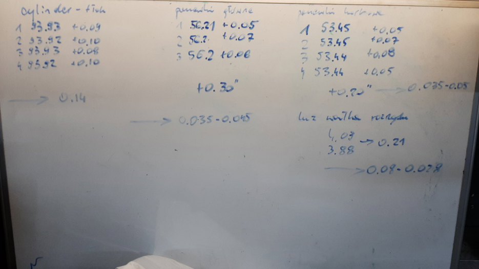 Pomierzyłem też kluczowe wymiary silnika. Ciekawe, że w/g instrukcji "Saab Competition Modification Guide" luzy na panewkach mają być 0.035 - 0.05mm, gdzie normalnie powinny mieć 0.04 do 0.06mm. Tu w kazdym razie jest wszystko do przyjęcia. Gorzej z tłokami. Standardowe, odlewane tłoi mają mieć luz w cylindrze 0.04 - 0.06mm, kute z reguły 0.14mm. W instrukcji jest błąd, luz na tłokach jest podany 0.014mm :). W każdym razie tu cylindry są ciut za ciasne...
