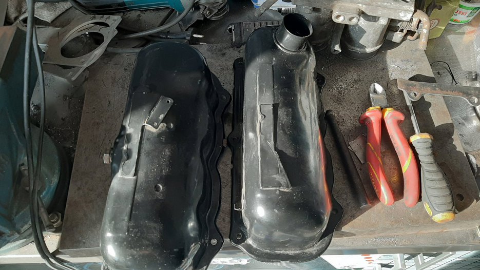 Złapałem też miskę olejową i pokrywy zaworów, żeby usunąć lakier proszkowy z ich wnętrza.