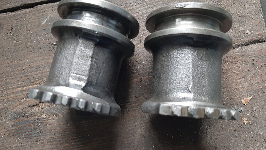 Widać różnicę. Po to właśnie otwierałem tą starszą, słabszą skrzynię, żeby pozyskać tą zębatkę.
