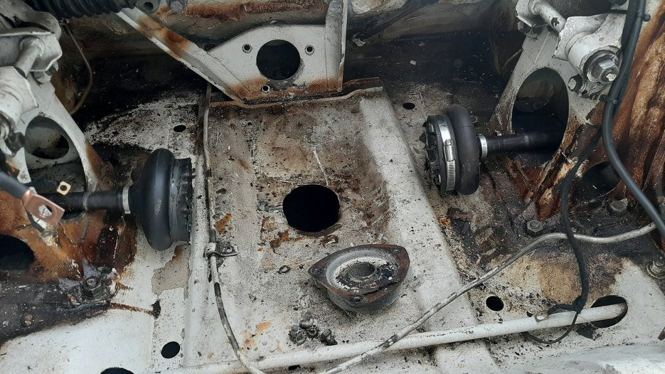 W Saabie została jeszcze skrzynia biegów, jedna w komorze silnika, druga w nogach pasażera.