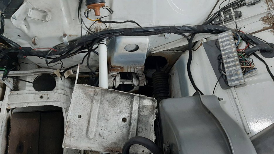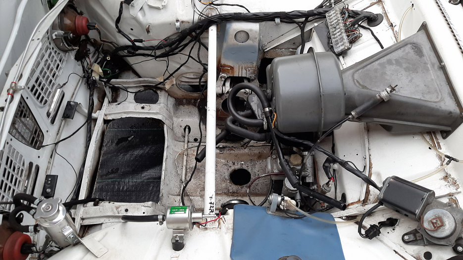 Jakoś tak się zebrałem mentalnie, że może by tak pociąć jakiegoś klasyka. Ponieważ w tym aucie miałem usunąć niepotrzebną już półkę akumulatora, to wybór był prosty. Okazało się, że półka była przyspawana grochami, być może nawet oryginalnymi (albo nie). Czy były lotniczego pochodzenia, czy nie, poddały się sile szlifierki kątowej i dremela.