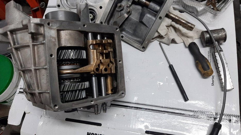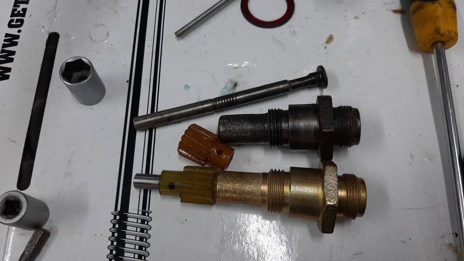 Nie mogłem wydłubać resztki starej linki prędkościomierza, więc pozyskałem mechanizm z drugiej skrzyni.