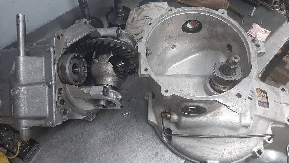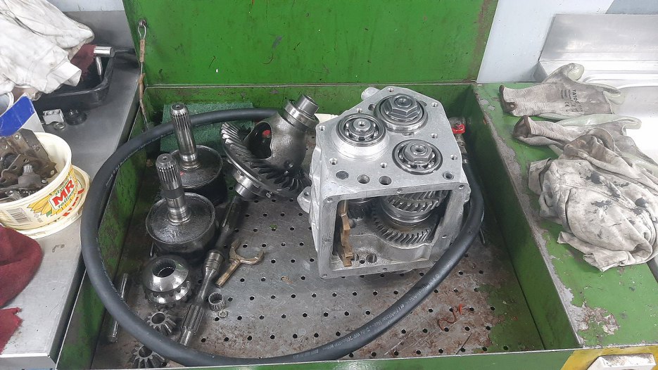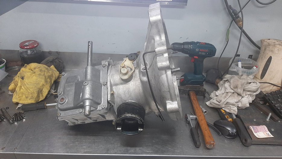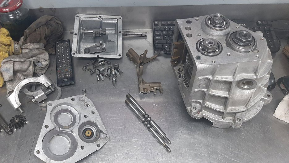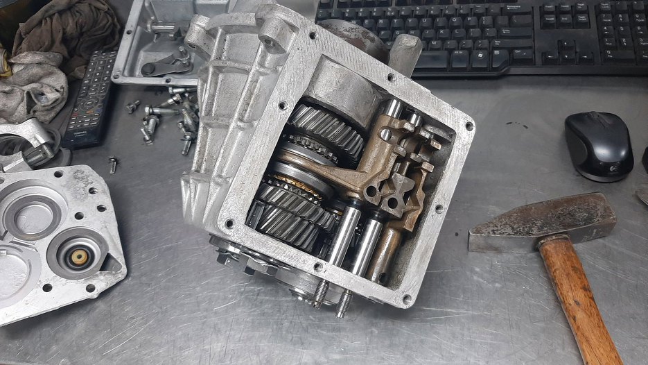 Wróćmy do skrzyń biegów. Najpierw ta, która ma trafić docelowo do auta. Została gruntownie domyta, również w środku. Nie miała w środku dużo szlamu, więc udało się bez rozkładania jej do rosołu. Da się zrobić rosół ze skrzyni?