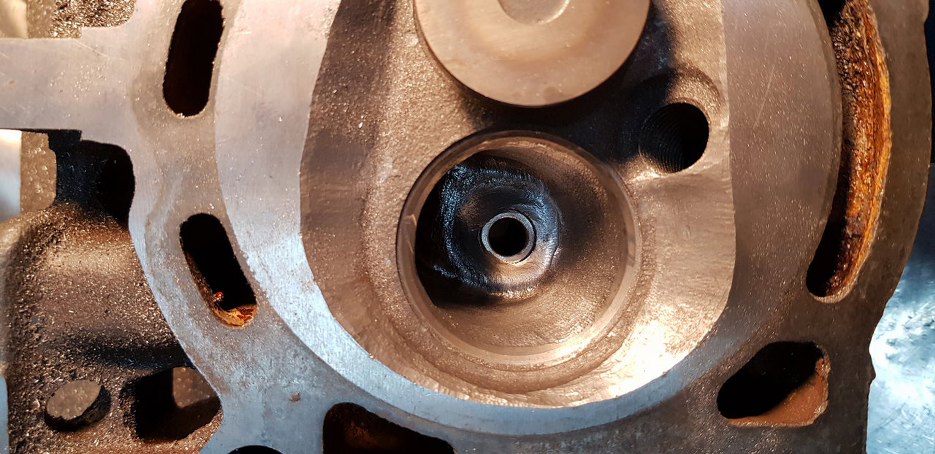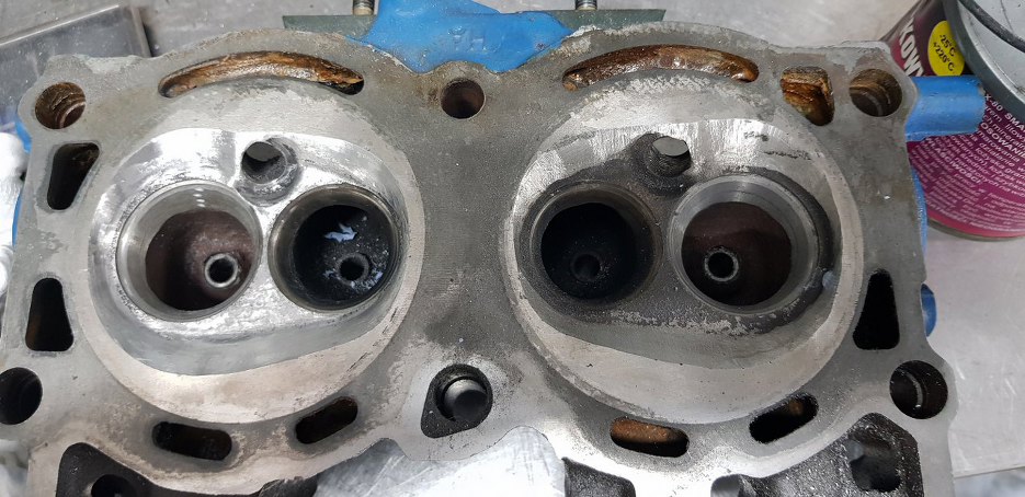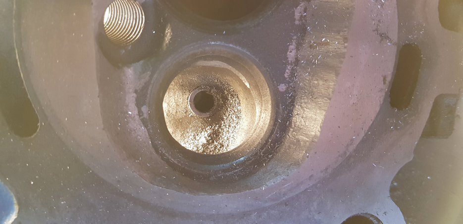 Tu druga głowica, jeszcze z nieruszonymi kanałami, ale ładnie widać różnicę pomiędzy komorami przed i po. Mimo, że te przed to i tak były już po :).