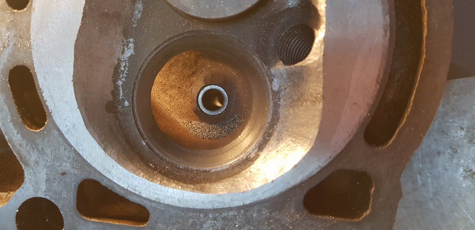 Otóż wstawione zostały większe zawory. Zmiana ta nie dała absolutnie nic, bo jak widać pod gniazdem zaworowym, większy zawór prowadzi do kanału (i dolotowego i wydechowego, po obu stronach jest konsekwentnie tak samo) o tym samym przekroju, jaki był wcześniej. Czyli o nawet 4-5mm mniejszej średnicy niż mogłaby być!