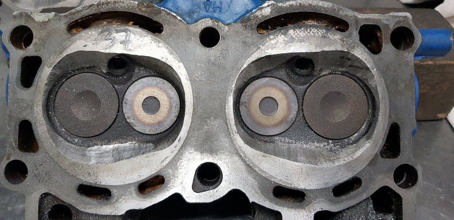 Przyjrzyjmy się trochę bliżej głowicom. Fabryczne V4 miały tylko jedno wyjście wydechowe z głowicy na dwa cylindry. Tu ktoś zadał sobie dużo trudu, żeby to wyciąć i wstawić dwa oddzielne porty. Teoretycznie dwa nieco mniejsze porty wydechowe powinny być i tak wydajniejsze niż jeden tylko odrobinę większy, ale... ale o tym później.