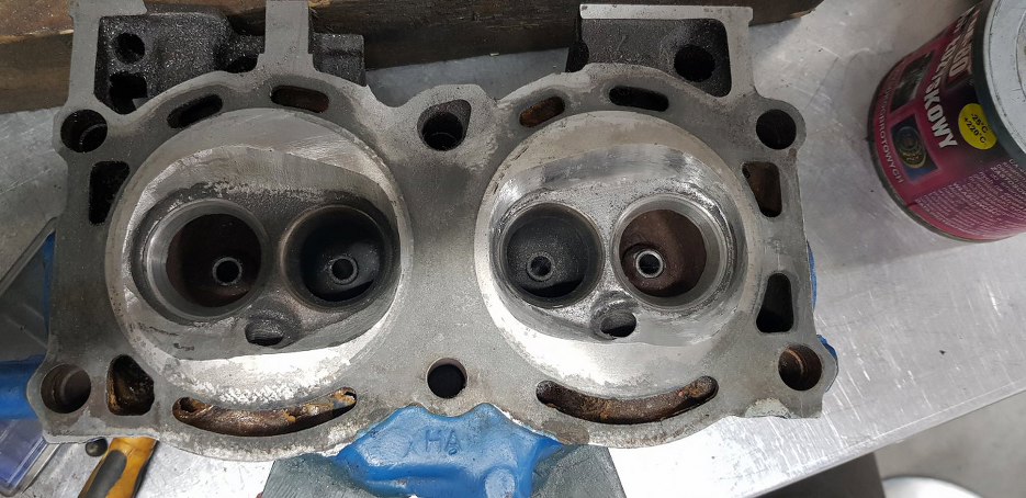 Komory spalania zostały wypolerowane na gładko, nierówności wyrównane. Dodatkowo przestrzenie między zaworami też zostały wygładzone. Powinno to pomóc ograniczyć osadzanie się nagaru. No i teraz komory spalania mają prawie tą samą pojemność - różnice są +/- 0,1ml, czyli w błędzie pomiarowym.