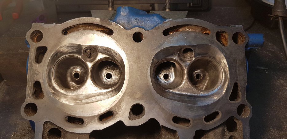 Głowice ogólnie są w dobrym stanie, niedawno przecież były robione. Komora spalania jest już przerobiona, dość dokładnie w/g instrukcji Saaba. Ale kanały to inna bajka. Tam była cała masa niewykonanej pracy.