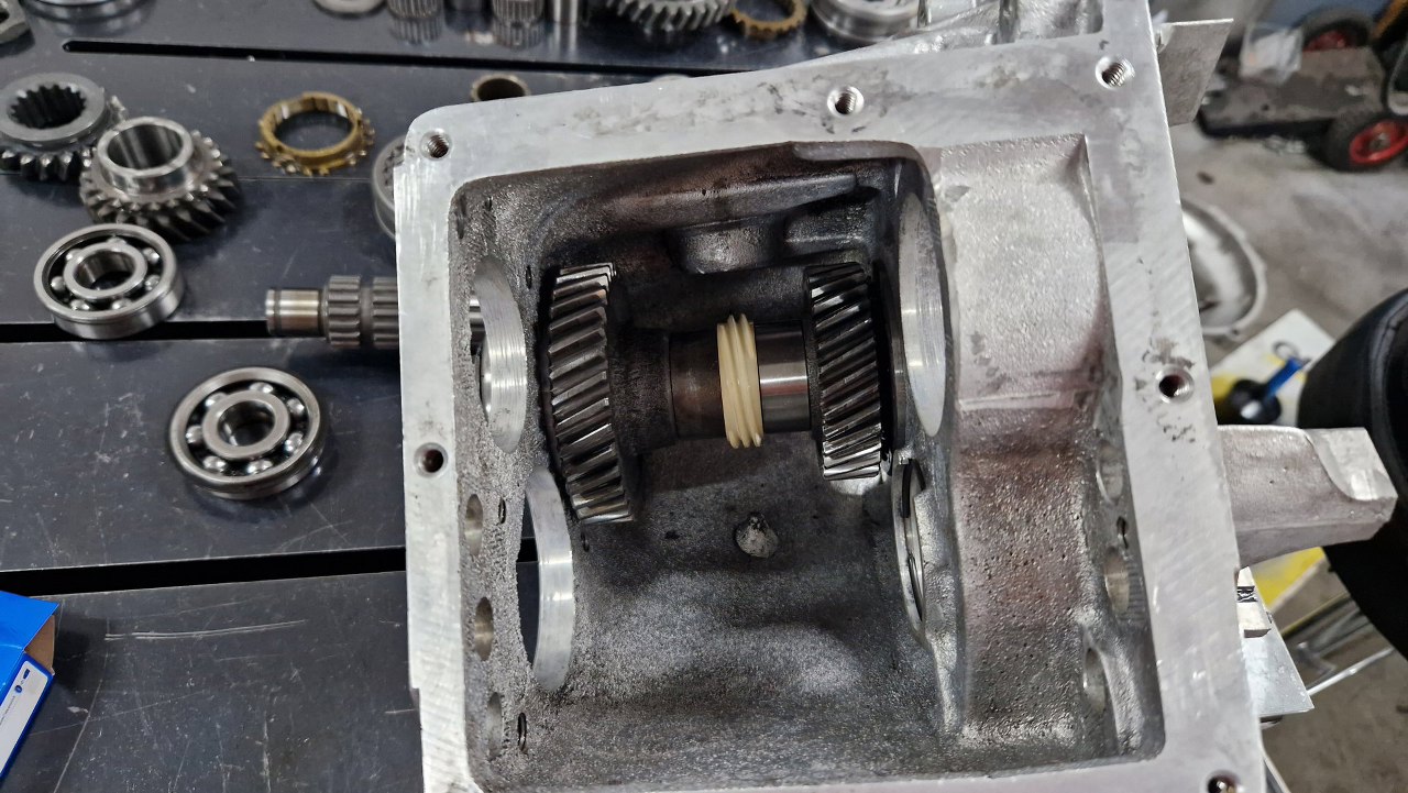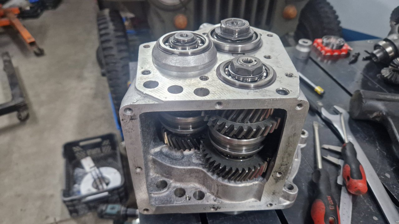 Na wałku mam nowe łożysko, w obudowie przygotowaną zębatkę spinającą napęd do skrzyni na stałe do tego wałka.