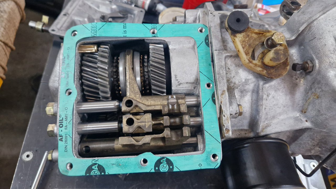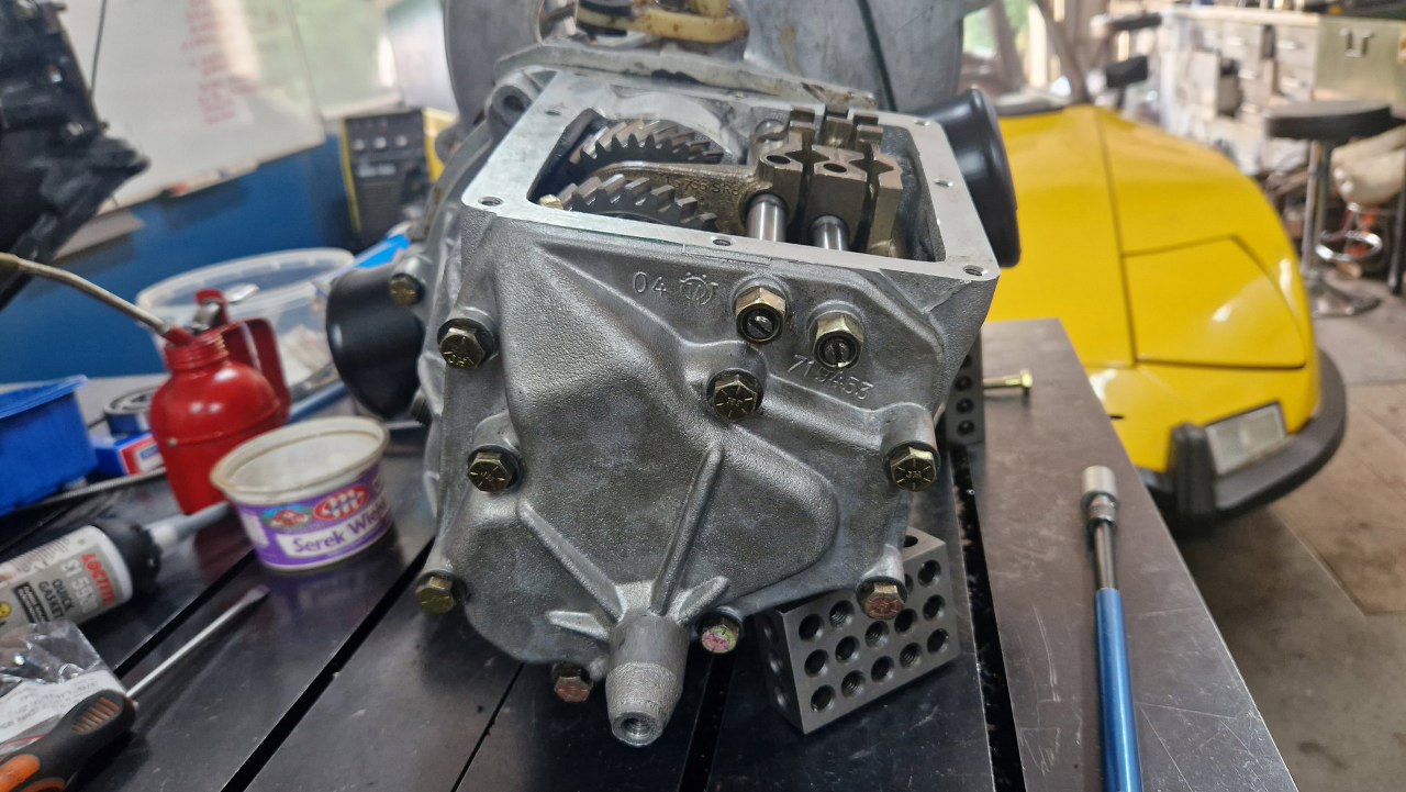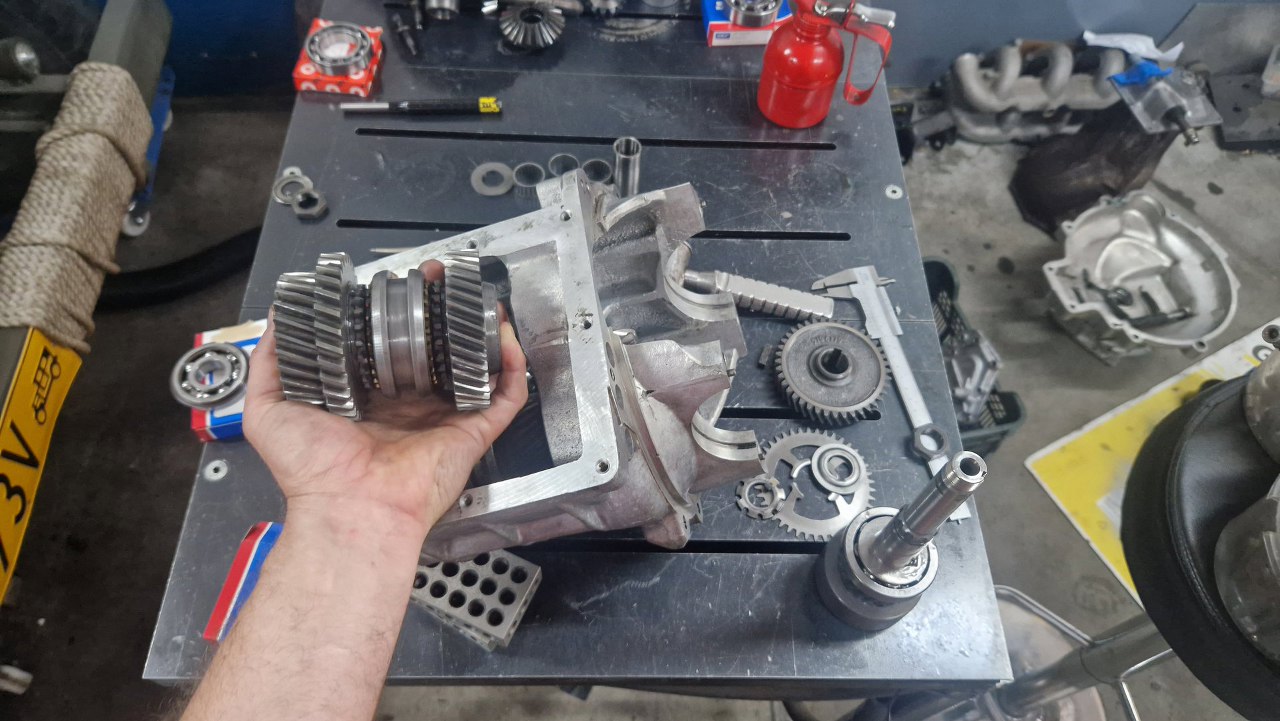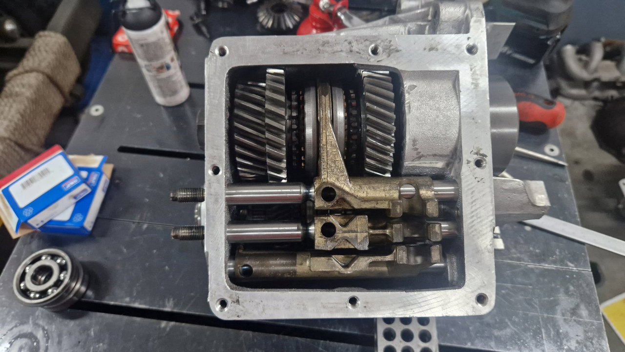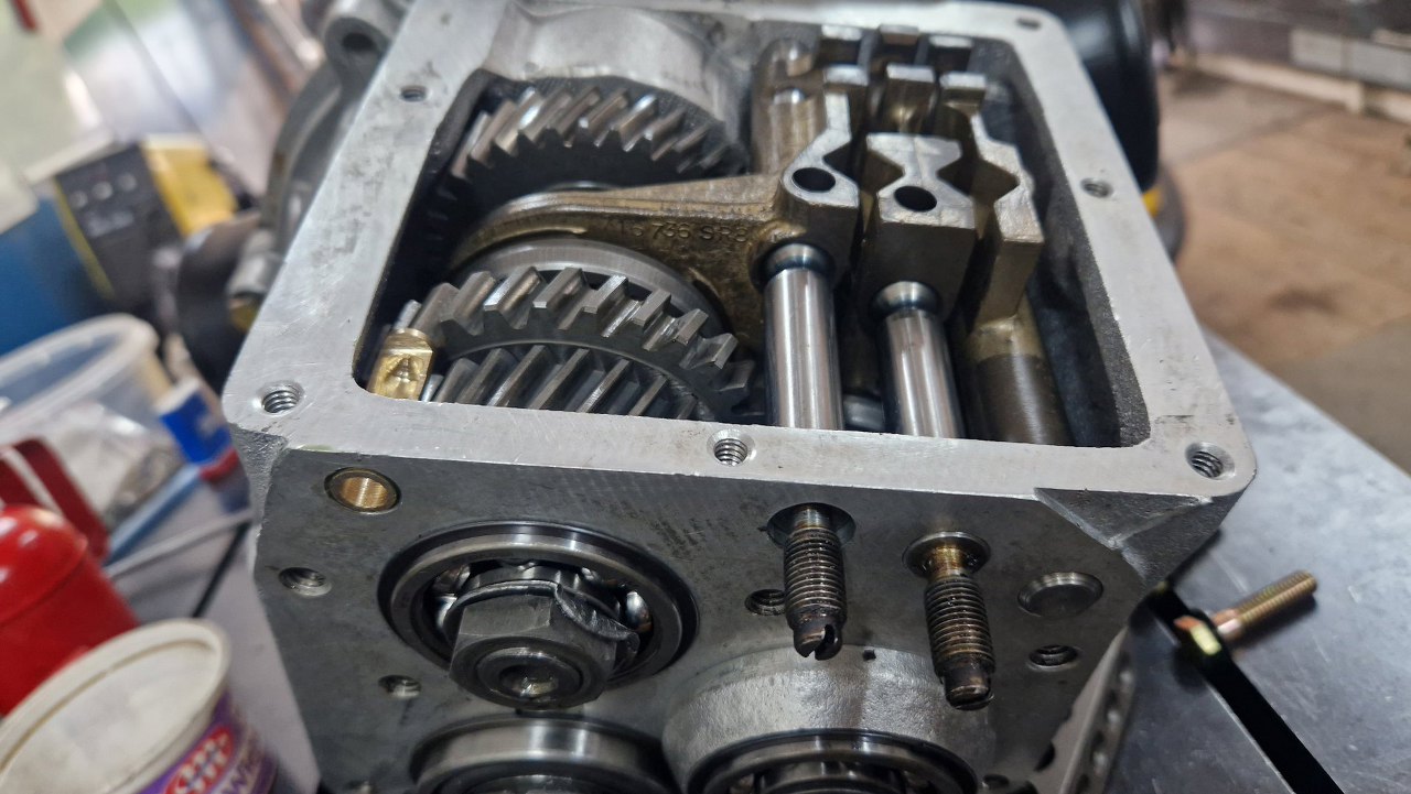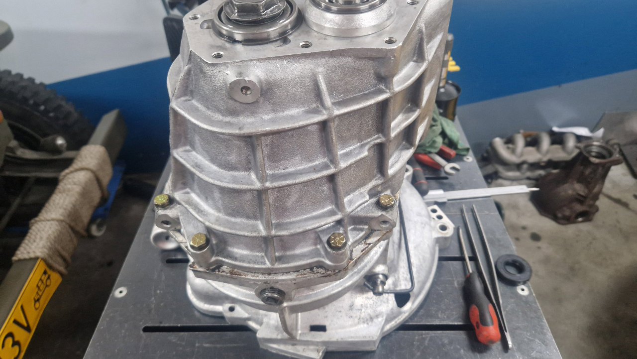 Skrzynia gotowa. Biego wchodzą, wszystko się kręci. Włożyłem półosie.