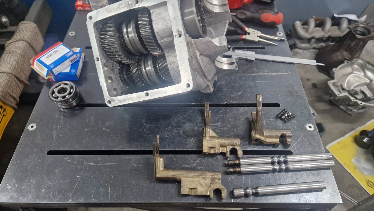 Mogę teraz się zająć widełkami biegów. Każde z nich mają sprężynkę i kulkę trzymające je na miejscu.