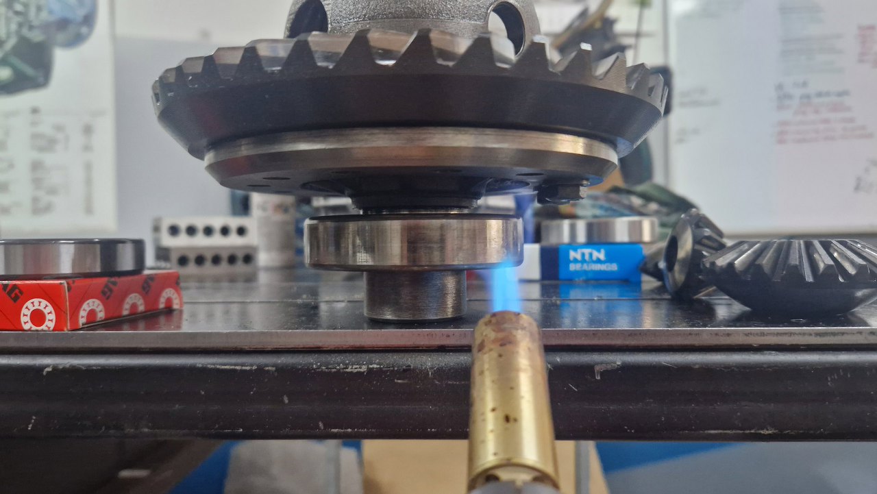 Ale do drugiego nie ma w ogóle dojścia. Zdejmuję je więc sposobem - wystarczy lekko podgrzać jego wewnętrzną bieżnię, żeby rozszerzyła się na tyle, żeby łożysko zsunęło się ze swojego miejsca.