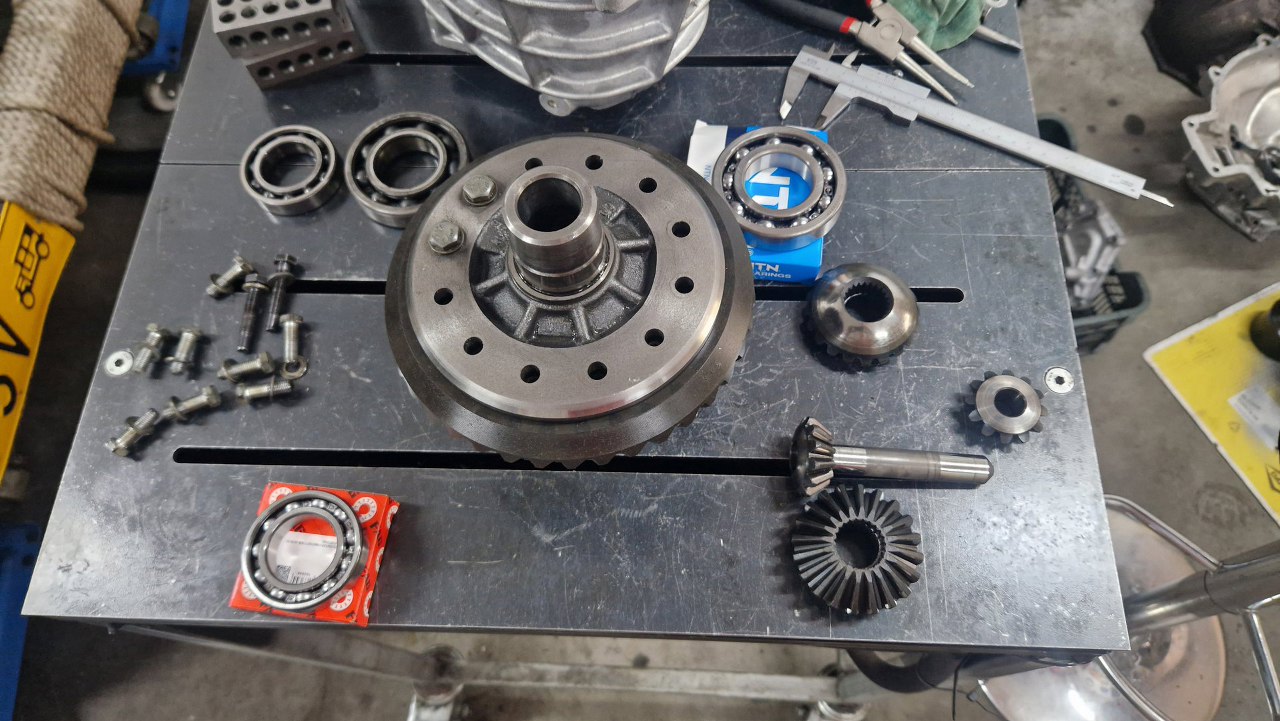 Mechanizm różnicowy rozłożyłem, żeby dokładnie go umyć i zwerygikować jego stan. Wygląda bardzo dobrze, więc go teraz poskładam. Wymieniam też jego łożyska, bo czemu nie - te akurat były bardzo tanie.